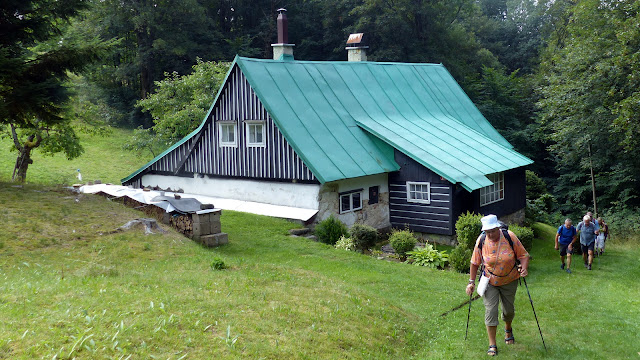 Vor wenigen Wochen waren wir beeindruckt von den Tannwasserfällen (Vodopády Jedlové) bei Josefsthal (Josefův Důl). Diese sind sicher eine touristische Sensation, aber die Kaskaden entlang des gesamten Tales der Schwarzen Desse sind noch ein anderes, und zwar unberührtes Kaliber. Wir sind beeindruckt. Verlockend ist es, sich in den Gumpen die Füße zu kühlen, aber Vorsicht!, durch das moorige Wasser sind die Platten glitschig, so dass einem unvermittelt zu einem Vollbad verholfen werden kann. Im abschüssigen Bereich ist das dann schon nicht ganz ungefährlich. In Darre (Souš) endet der Aufstieg durch das Tal der Schwarzen Desse. Das Restaurant „Chata Na Souši“ ist unbedingt eine Empfehlung wert.