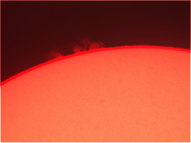 Im H-Alpha zeigte sich über den gesamten Sonnenrand eine mittlere Aktivität der Protuberanzen. Das letzte Bild der Chromosphäre zeigt ein großes Filament(Protuberanz) in der Nähe des Sonnenflecks 3417.