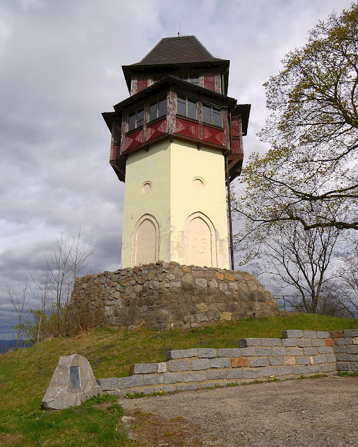 Der Aussichtsturm auf dem Hartberg (Hard, 466 Meter) in Falkenau an